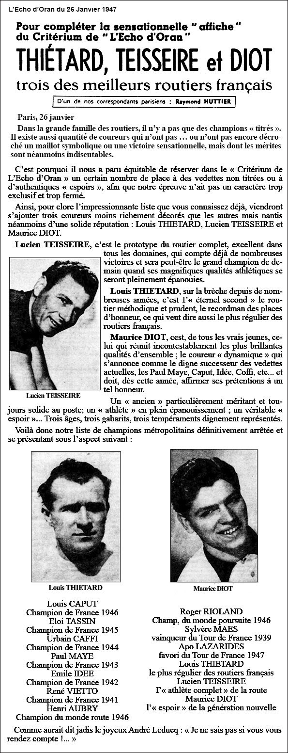 Dossards n°11-12-13 : Louis THIETARD, Lucien TEISSEIRE, Maurice DIOT (France) Source gallica.bnf.fr / BnF