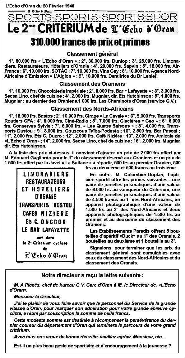 Les récompenses aux coureurs ... (