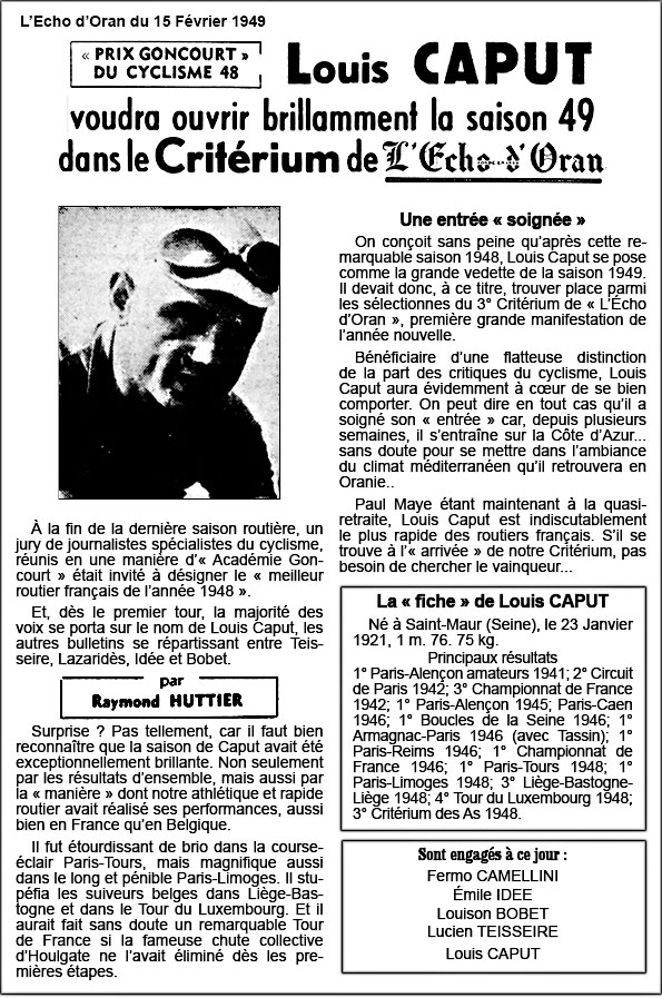 Louis CAPUT "Meilleur routier français 1948" (