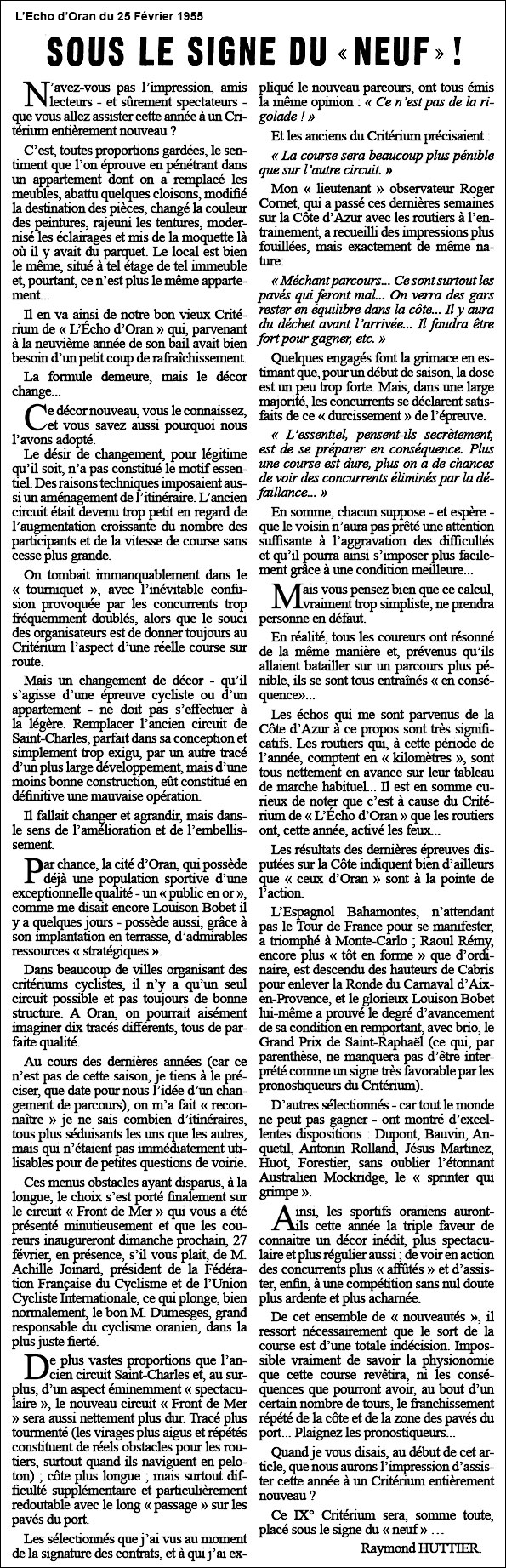 Tout est neuf dans ce 9°Critérium .... (